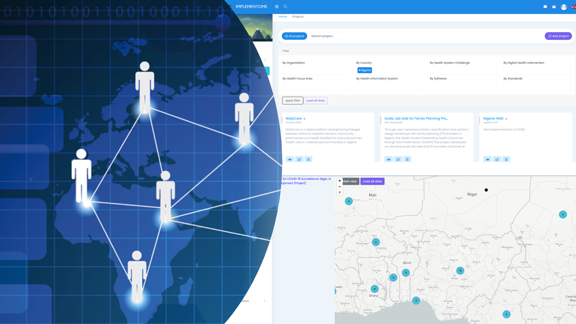 Implementome is specifically designed to support the work of implementers, decision-makers, actors from the public and private sectors, and academia involved in delivering innovative digital health interventions. Our goal is to enable digital health transformation for better and sustainable impact on population health.